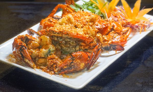 Fresh crab stir-fried with fragrant garlic and creamy butter. Served hot with chili salt.