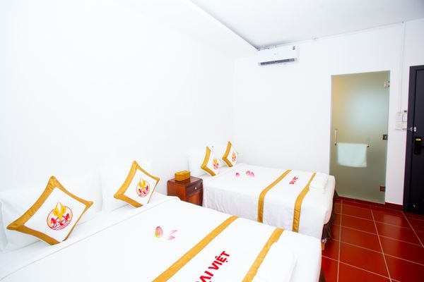 Phòng ốc gọn gàng, sạch sẽ, cách bài trí mang hơi hướng thuần Việt, có bàn làm việc, máy sấy tóc, điều hòa mát lạnh và đủ mọi thứ cần thiết. Cửa sổ nhìn xuống phố, nhưng rèm kéo vào là vẫn ngủ ngon nguyên đêm.