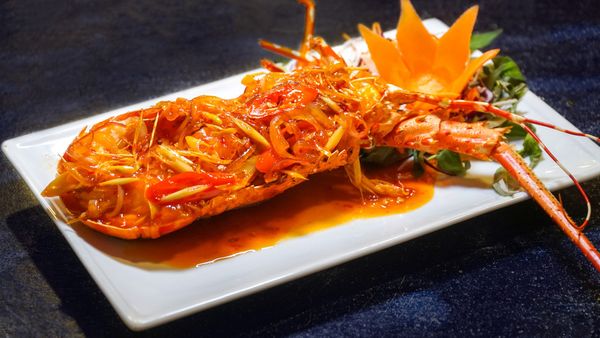 Tropical rock lobster with signature Lua Dai Viet sauce – rich, tangy, and unforgettable