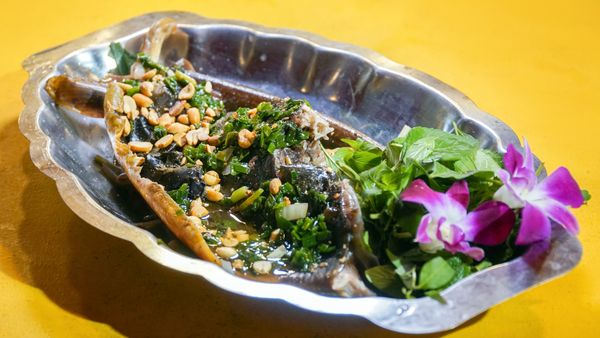 Cá bống mú nổi tiếng với thớ thịt săn chắc, ít xương dăm. Khi hấp xì dầu, thịt cá thấm đều gia vị, giữ nguyên độ mềm mọng và mùi thơm đặc trưng.