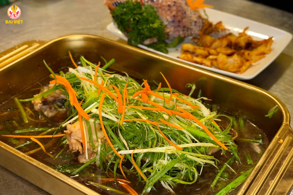 Món ăn không chỉ nổi bật nhờ cách chế biến tinh tế, mà còn ở phần trình bày đẹp mắt – cá được hấp nguyên con, rắc đều hành lá, tiêu sọ, dùng nóng cùng cơm trắng. Thực khách yêu thích ẩm thực Trung Hoa chắc chắn sẽ không thể bỏ qua món này.