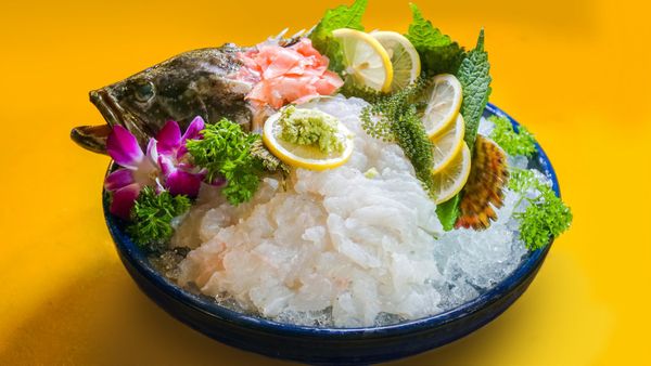 Cá bống mú là loại cá đặc biệt được nuôi trong hồ hải sản ngay tại nhà hàng, nhờ vậy luôn giữ được độ tươi ngon tuyệt đối. Sashimi cá bống mú có vị thanh, mềm mịn, rất hợp cho những ai yêu thích sự nhẹ nhàng, tinh tế trong ẩm thực Nhật.
