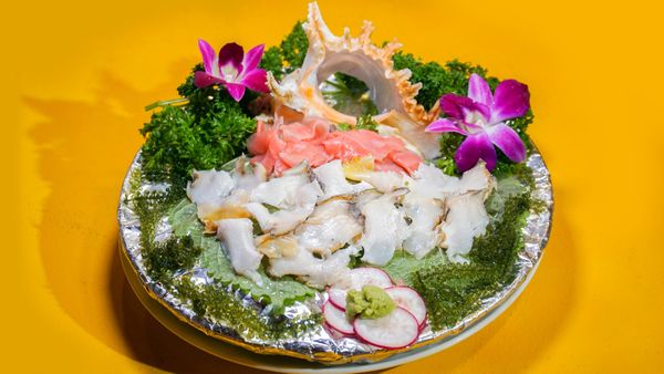 Ốc hoàng hậu là loại hải sản cao cấp, thịt giòn sần sật, vị ngọt đậm. Sashimi ốc hoàng hậu tại Nhà hàng Đại Việt mang đến cảm giác mới lạ, khác biệt so với sashimi cá thông thường, là lựa chọn hoàn hảo cho thực khách muốn khám phá sự đa dạng trong ẩm thực Nhật.