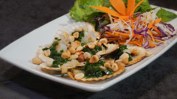Sò điệp tại Đại Việt được nhập tươi từ Bình Thuận, thịt trắng ngà, mềm và thơm. Khi chế biến, sò được rửa sạch, để nguyên vỏ và đặt lên bếp than. Khi sò bắt đầu tách miệng, đầu bếp cho hỗn hợp mỡ hành xanh mướt cùng đậu phộng rang giã dập lên trên. Nhiệt nóng làm mỡ hành quyện vào thịt sò, tạo nên hương thơm béo bùi đặc trưng. Miếng sò mềm ngọt, mỡ hành thơm ngậy và chút giòn bùi của đậu phộng khiến món ăn trở thành lựa chọn khai vị được nhiều thực khách yêu thích.