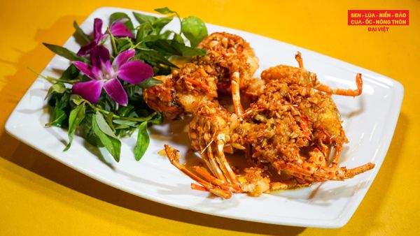 Món ăn độc quyền tại Nhà hàng Đại Việt, kết hợp sốt lúa rang đặc chế với tôm hùm baby, tạo nên vị mặn ngọt đặc trưng, đậm đà và lạ miệng. Ăn kèm cơm trắng hoặc bánh mì đều cuốn hút.